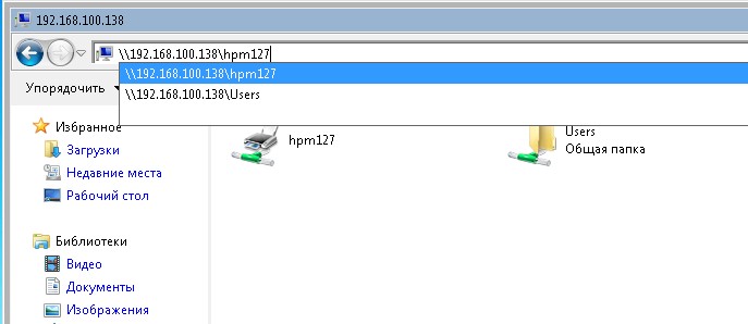 - Вводим \\192.168.100.138\hpm127, нажимаем «Ок»